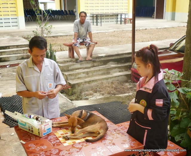 สำนักงานปศุสัตว์อำเภอเวียงเชียงรุ้งบริการทำหมันสุนัขของนายจามอน หนูบ้านเกาะ ๕๓๘ หมู่ที่๖ บ้านเหล่า ตำบลทุ่งก่อ โดยนายจันทร์ รักลีน เจ้าหน้าที่สัตวบาล